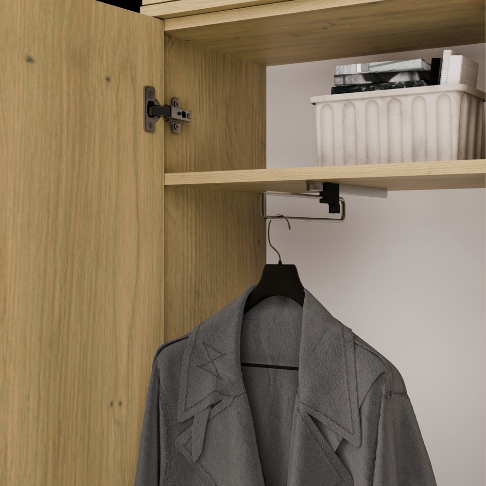 - Szerokość: 150 cm (2 wieszaki po 50 cm + szafa 50 cm)