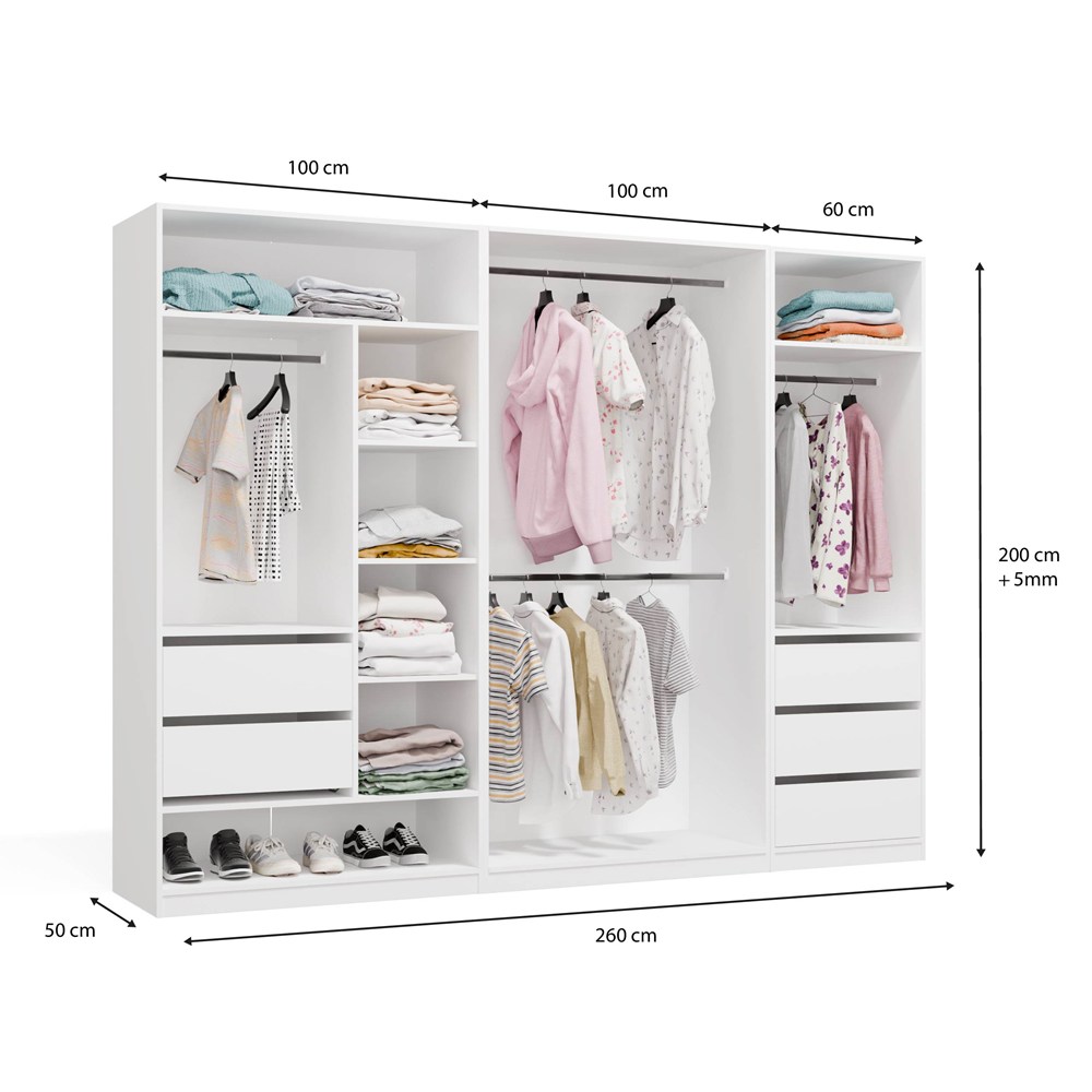 Garderoba Modułowa OPENO ZESTAW 260/200 BIAŁA Szuflady Drążki Półki Duża Do Sypialni