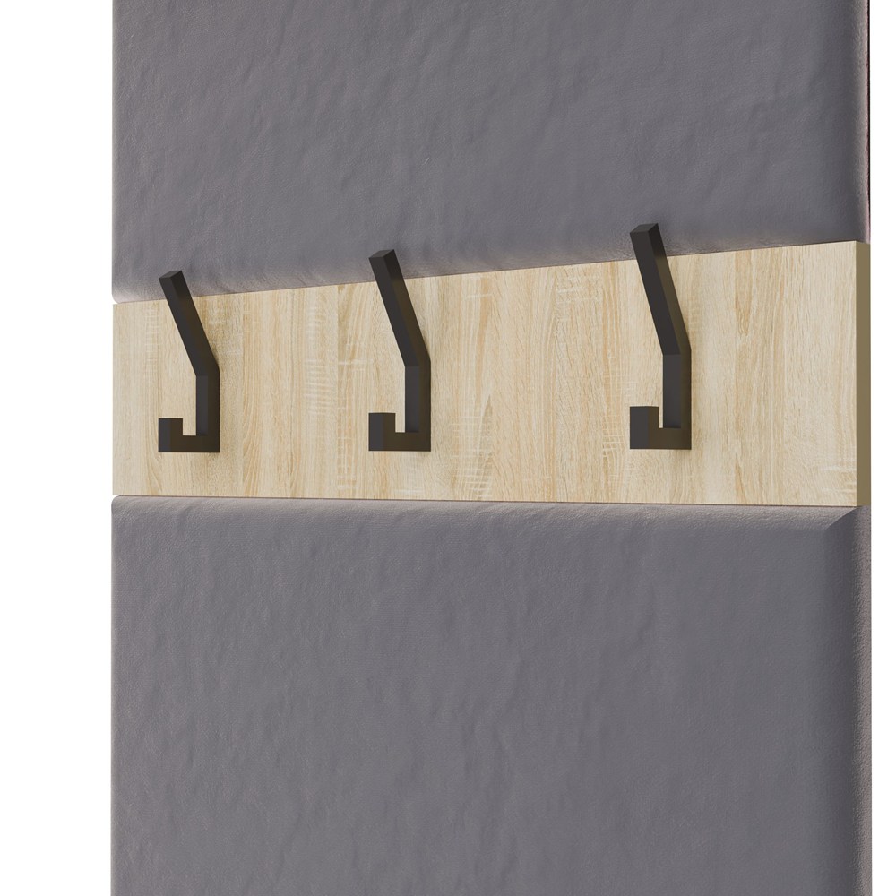 Zamiast klasycznej zabudowanej szafy, model ten wyposażono w otwarte wieszaki z haczykami, które pozwalają na szybki dostęp do kurtek, toreb czy plecaków. Dzięki temu mebel sprawdzi się zarówno w małych wnętrzach, jak i w przestronnych holach, gdzie liczy się funkcjonalność i optyczna lekkość.