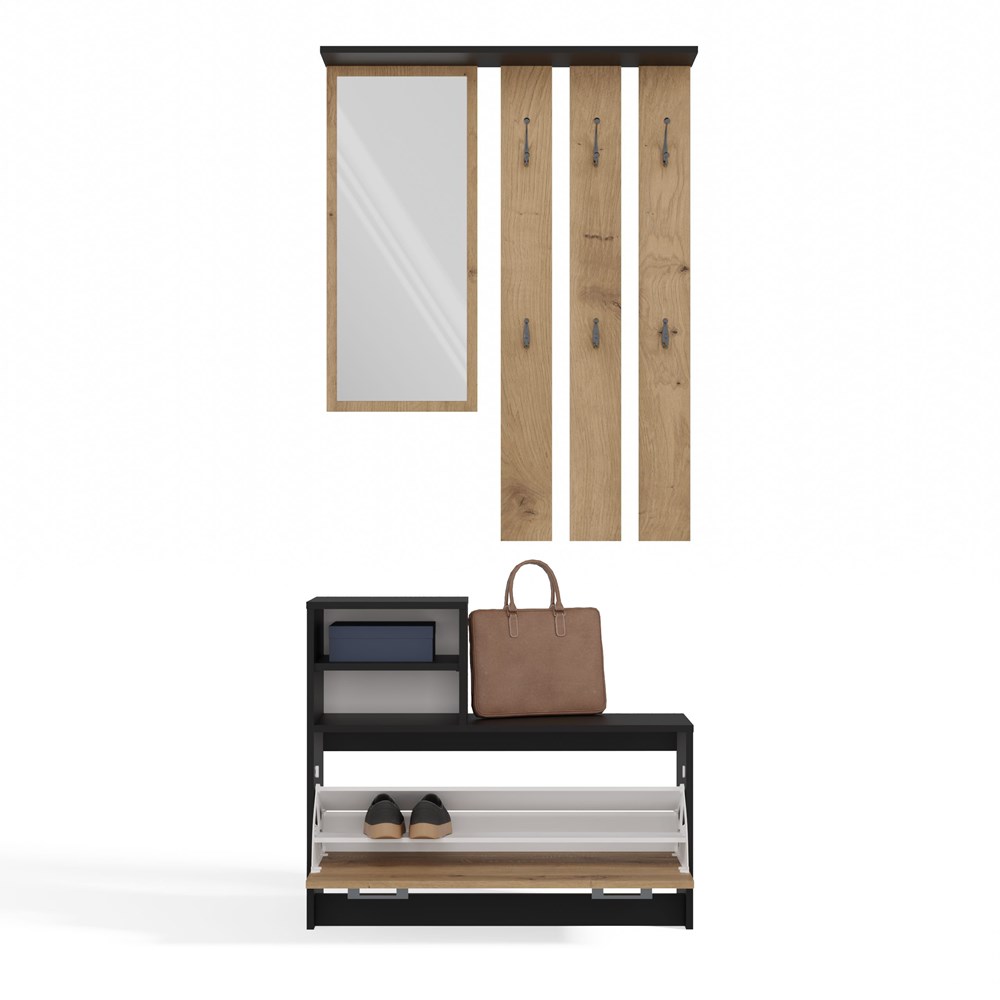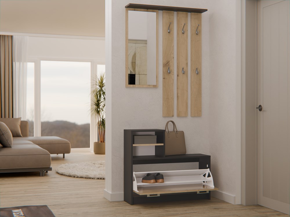 PRAKTYCZNY ZESTAW DO PRZEDPOKOJU WIESZAK Z LUSTREM + SZAFKA NA OBUWIE