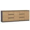 Całość dopełniają czarne uchwyty, które nadają komodzie lekko industrialnego charakteru.