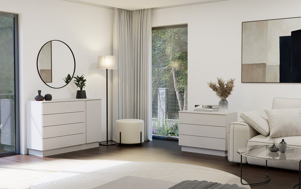 Nowoczesna komoda AMBER 1D4S to połączenie minimalistycznego stylu z funkcjonalnością, które sprawdzi się zarówno w salonie, sypialni, jak i przedpokoju. Dzięki kompaktowym wymiarom i uniwersalnej kolorystyce, wpasuje się w niemal każdą przestrzeń.