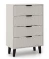 Wnętrze komody składa się z półek oraz czterech szuflad, które pomogą przy rozmieszczaniu rzeczy. Łatwiej będzie znaleźć to, czego się szuka.