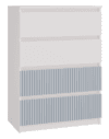 Seria ARTESO charakteryzuje się nadrukowanymi, pionowymi wzorami na froncie mebla.