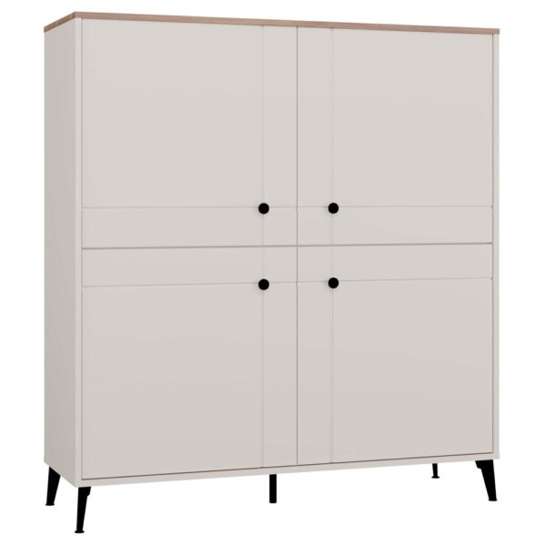Model wyposażony jest w cztery fronty z cichym domykiem, za którymi kryje się aż osiem praktycznych półek – idealnych do przechowywania książek, dokumentów, tekstyliów czy codziennych akcesoriów.