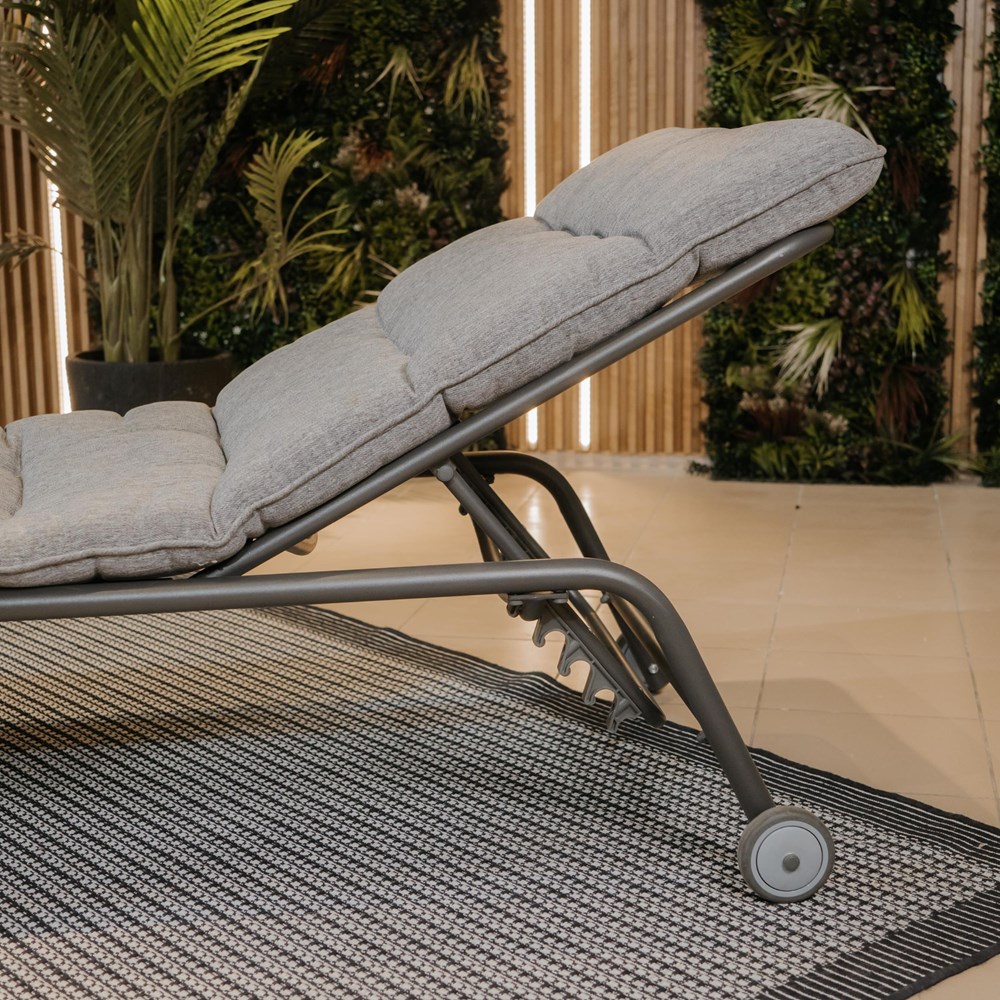 • Wbudowane kółka – łatwe przemieszczanie leżaka