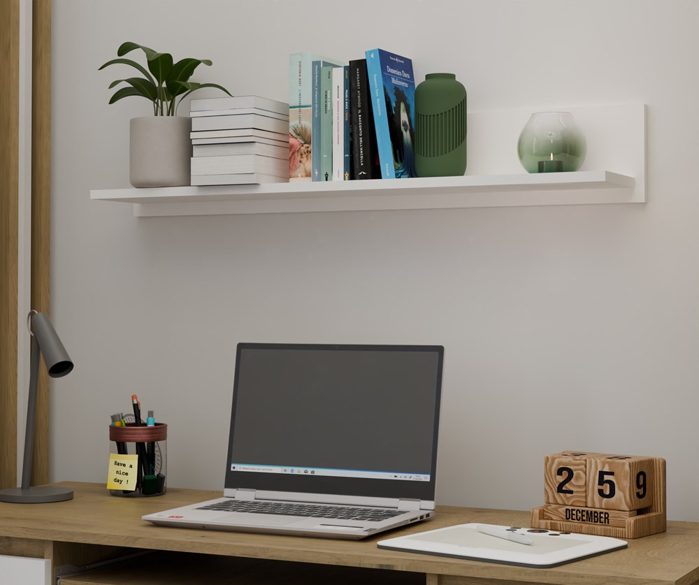 Dzięki gładkiej, matowej powierzchni i prostej konstrukcji półka jest bezpieczna w codziennym użytkowaniu i łatwa do utrzymania w czystości. Jej uniwersalny charakter sprawia, że równie dobrze odnajdzie się nad biurkiem, komodą czy szafką RTV w innych pomieszczeniach domu.