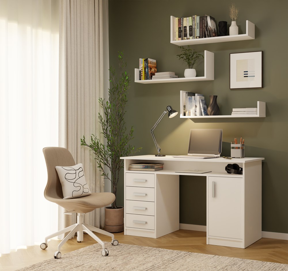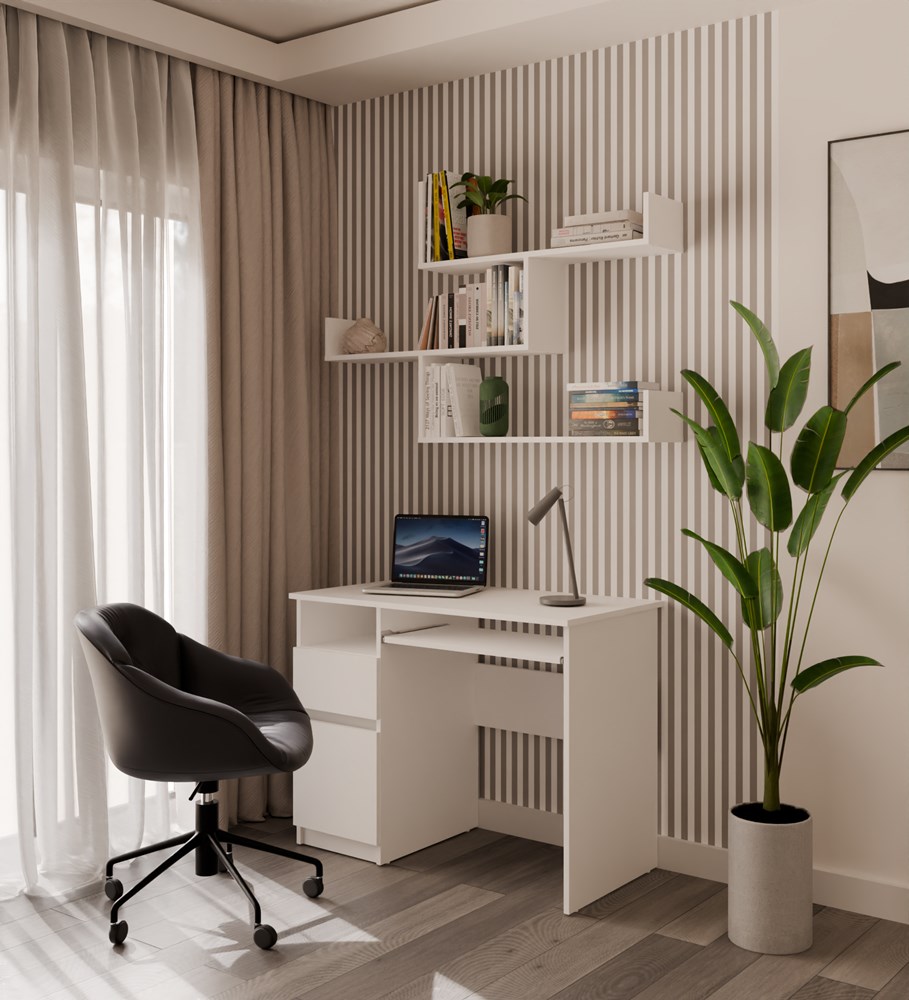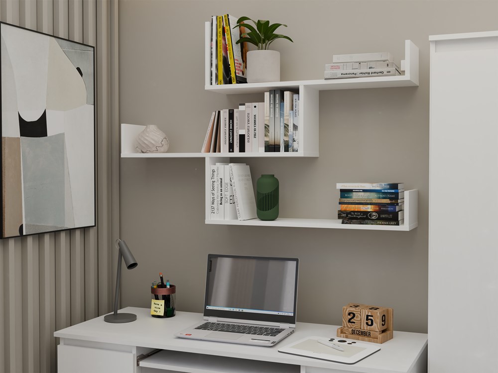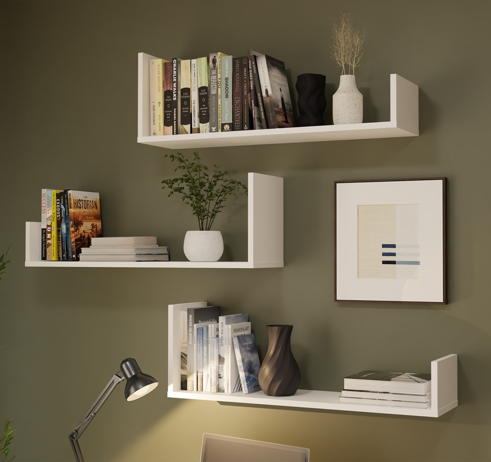 Minimalistyczna forma półek KOBI wprowadza do wnętrza lekkość i porządek, jednocześnie zapewniając praktyczne miejsce do przechowywania i ekspozycji dekoracji. Biały kolor doskonale komponuje się zarówno z nowoczesnymi, jak i klasycznymi aranżacjami, a także świetnie współgra z innymi meblami – np. komodą, regałem czy biurkiem.