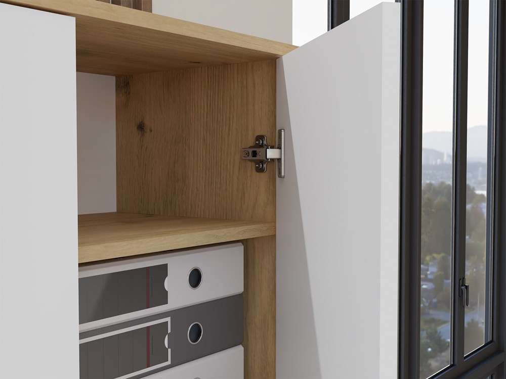 Regał Biurowy OLIV 2D 2 Drzwi Do Biura Do Gabinetu Salonu DĄB ARTISAN BIEL