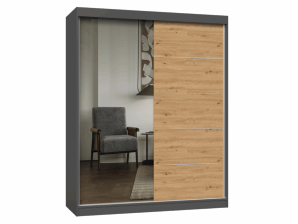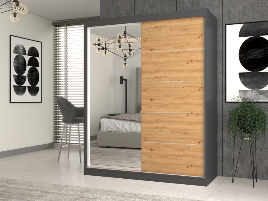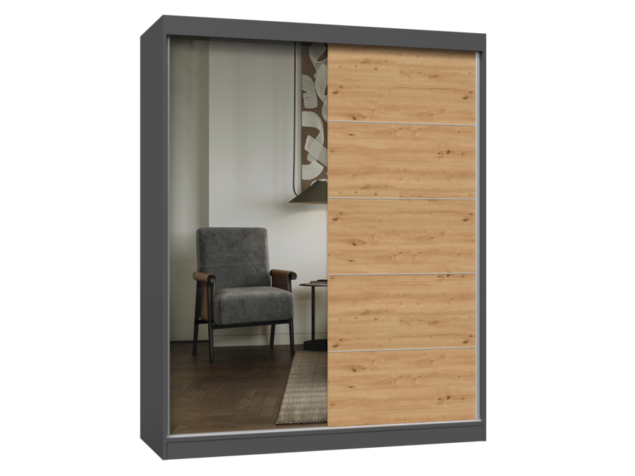 Szafa IGA 160 A/C ANTRACYT ARTISAN 1 x Lustro Szprosy Do Sypialni Przedpokoju