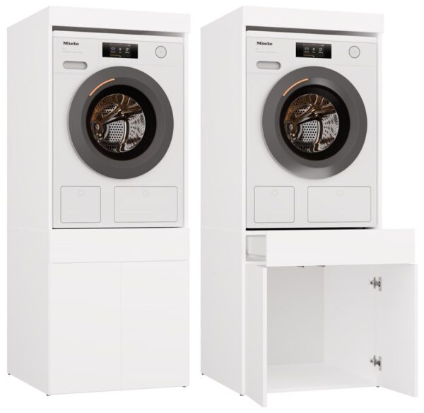 Przestrzeń na pralkę lub suszarkę – stabilna zabudowa z otwartą wnęką