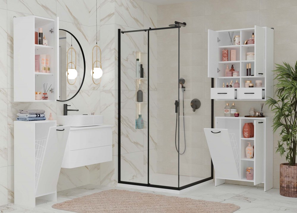 Szafka łazienkowa NINA 1K to praktyczny mebel stworzony z myślą o wygodnym i estetycznym przechowywaniu prania. Dzięki kompaktowej formie i funkcjonalnemu wnętrzu z uchylnym koszem, idealnie sprawdzi się nawet w niewielkich łazienkach, pozwalając zaoszczędzić miejsce i utrzymać porządek.