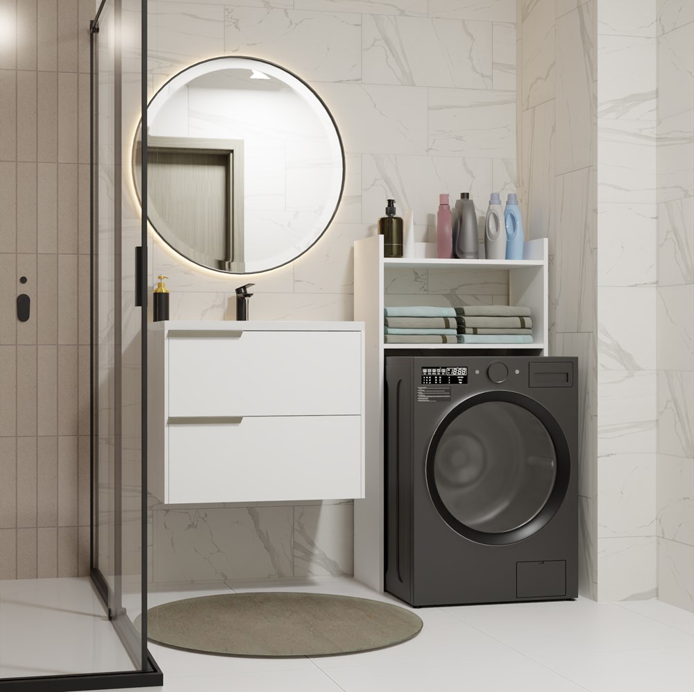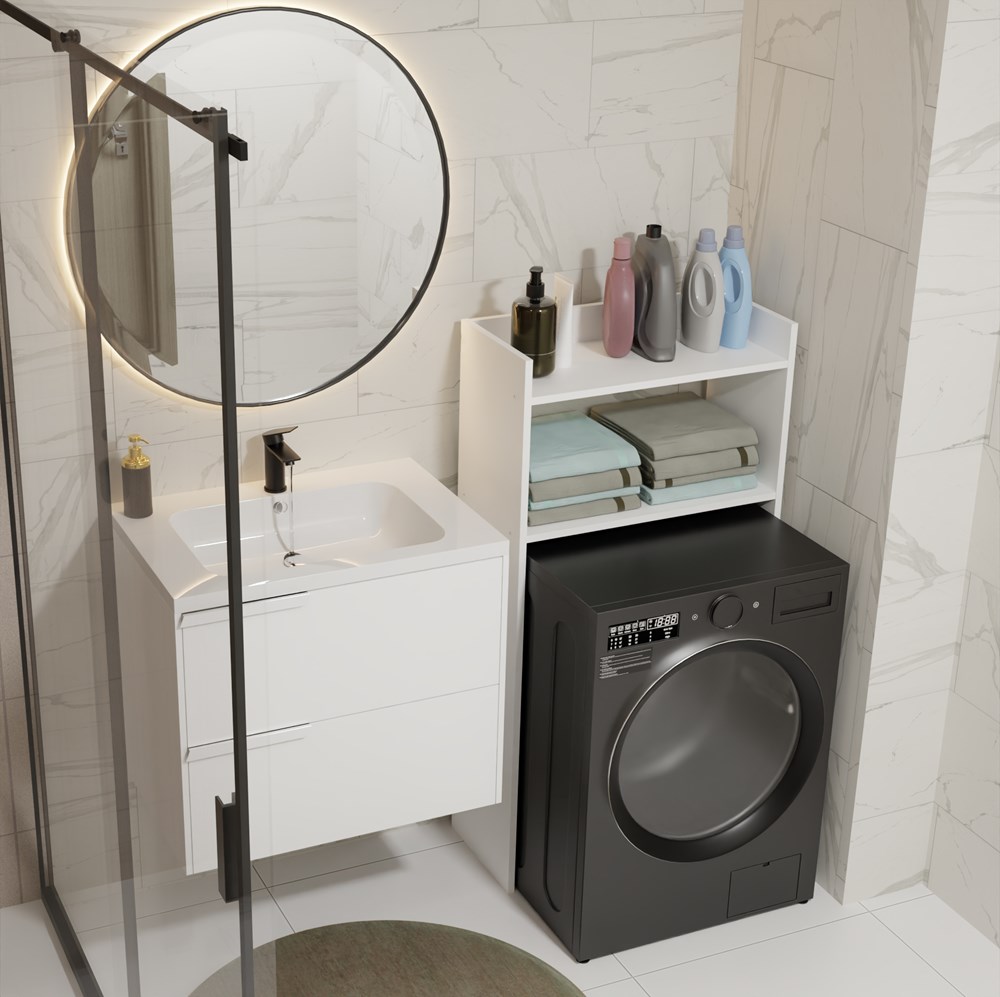 Nowoczesna szafka łazienkowa NINA NP to funkcjonalny mebel, który idealnie wpasuje się w każdą łazienkę – zarówno w małej kawalerce, jak i w większym mieszkaniu. Została zaprojektowana z myślą o maksymalnym wykorzystaniu przestrzeni nad pralką, oferując dodatkowe miejsce do przechowywania detergentów, ręczników czy kosmetyków.