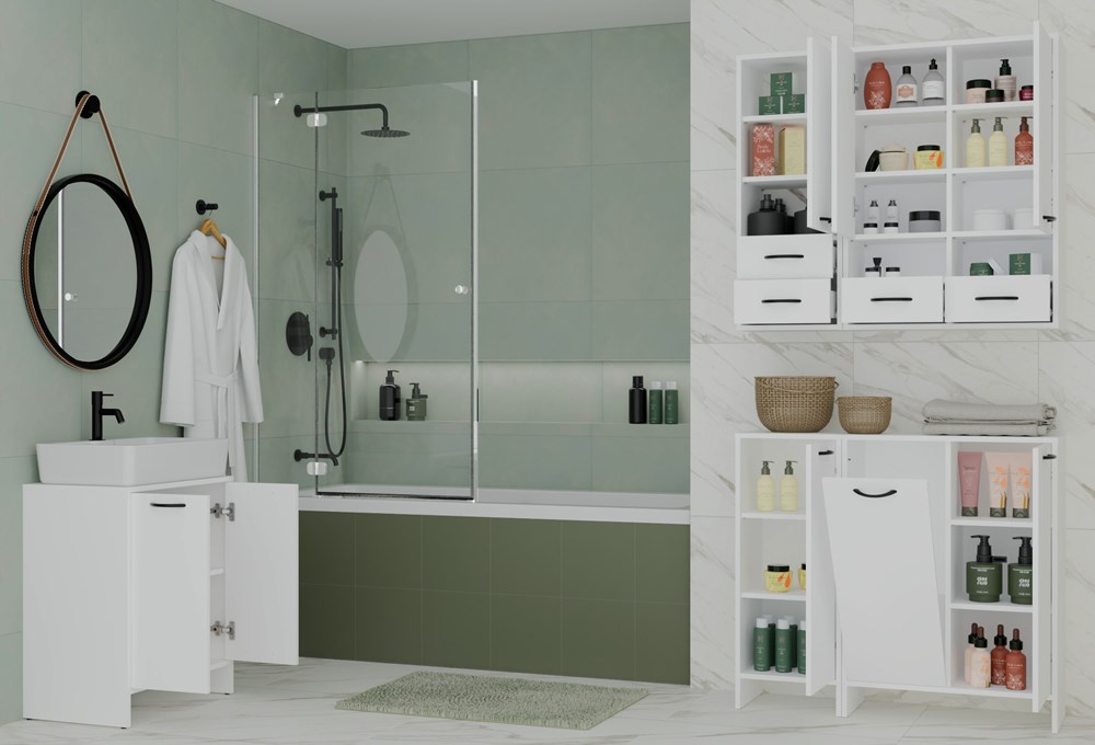 - 8 praktycznych półek – idealne na kosmetyki, środki czystości i inne akcesoria