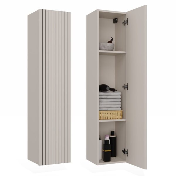 Szafka została zaprojektowana z myślą o przechowywaniu kosmetyków, ręczników czy środków czystości – wszystko, czego potrzebujesz w łazience, znajdzie swoje miejsce w środku.
