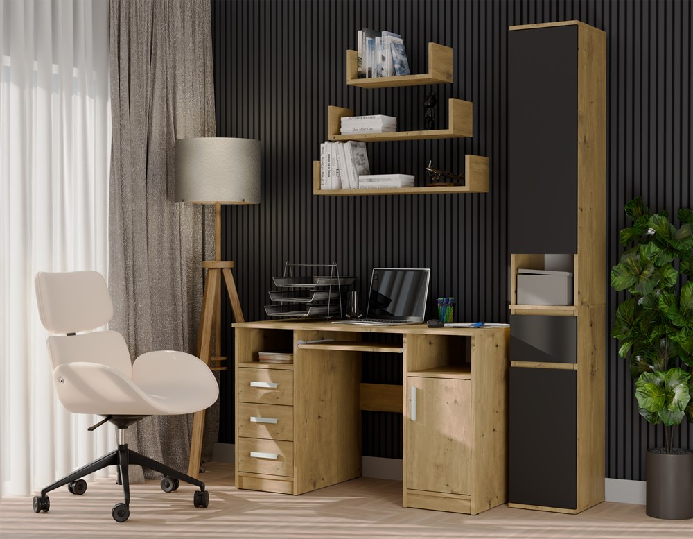 Szafka Słupek LIOR 2D1S DĄB ARTISAN / CZERŃ Regał z Szufladą Do Pokoju Biura
