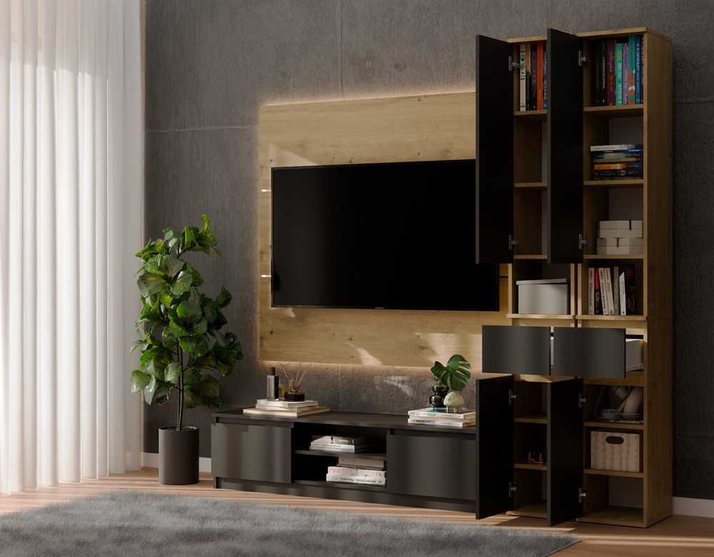 - Modna kolorystyka: Połączenie dwóch kolorów: Czerń i Dąb Artisan tworzy stylowy kontrast.