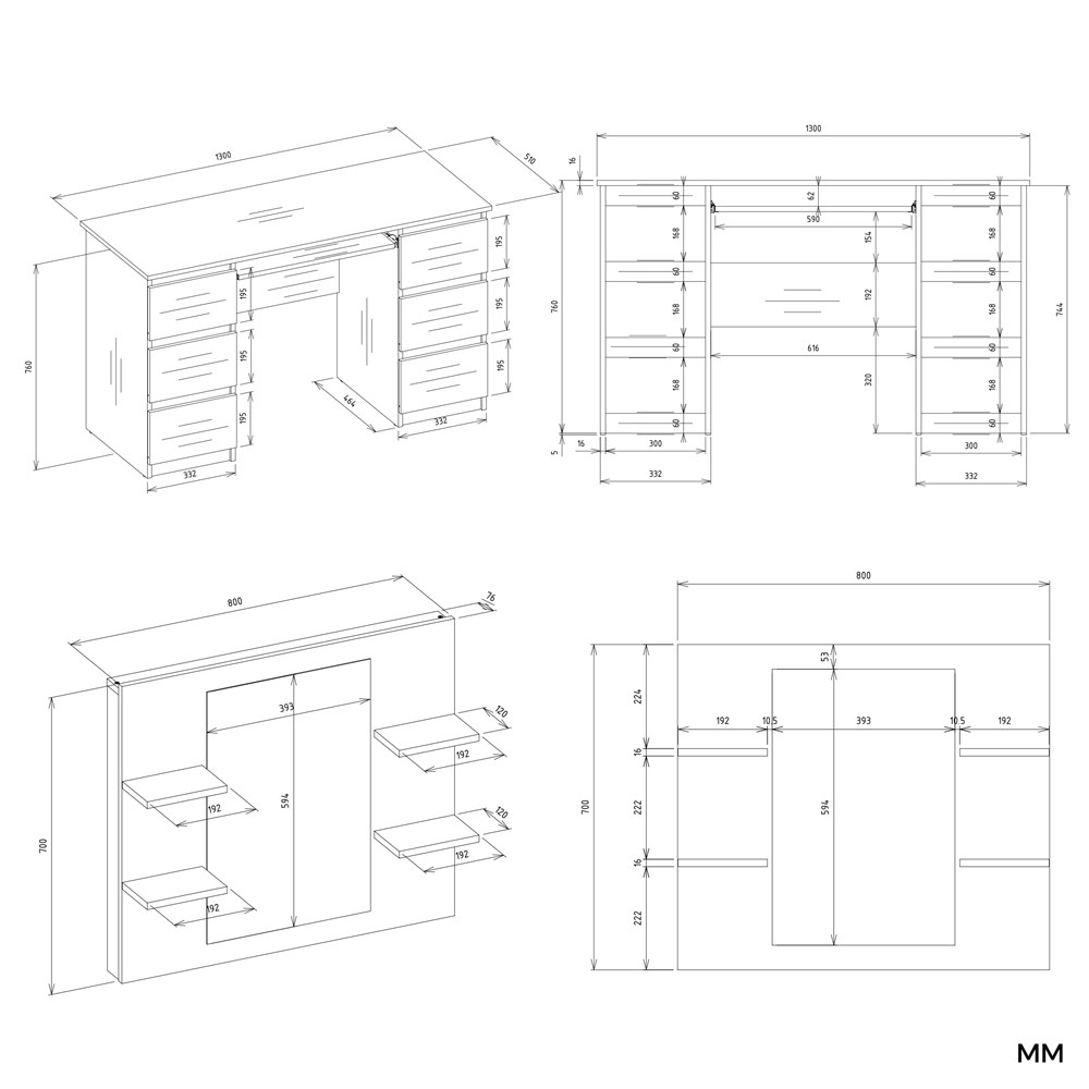 Toaletka z lustrem i 4 półkami to idealny mebel dla osób, które cenią sobie komfort oraz piękno swojego otoczenia. Przemyślana konstrukcja pozwala na wygodne przechowywanie kosmetyków i biżuterii, a także może funkcjonować jako praktyczne biurko.