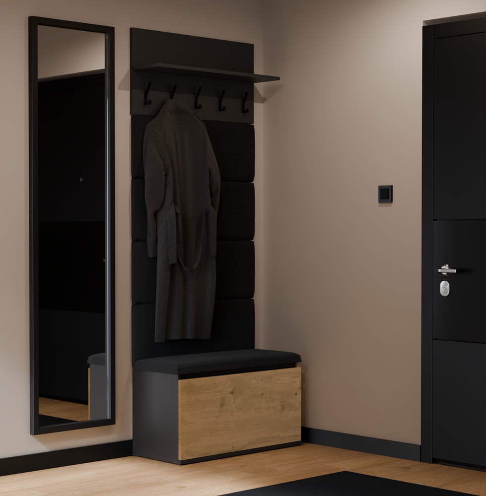 Wieszak + Szafka LIOR CZERŃ / DĄB ARTISAN Do Przedpokoju