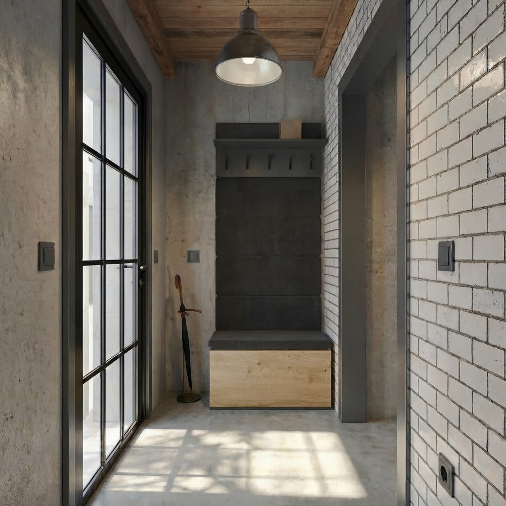 Zamiast klasycznej zabudowanej szafy, model ten wyposażono w otwarty wieszak z haczykami, który pozwala na szybki dostęp do kurtek, toreb czy plecaków. Wieszak montowany jest do ściany, co oszczędza przestrzeń i zapewnia stabilność, a stojąca szafka na buty ułatwia codzienne użytkowanie.