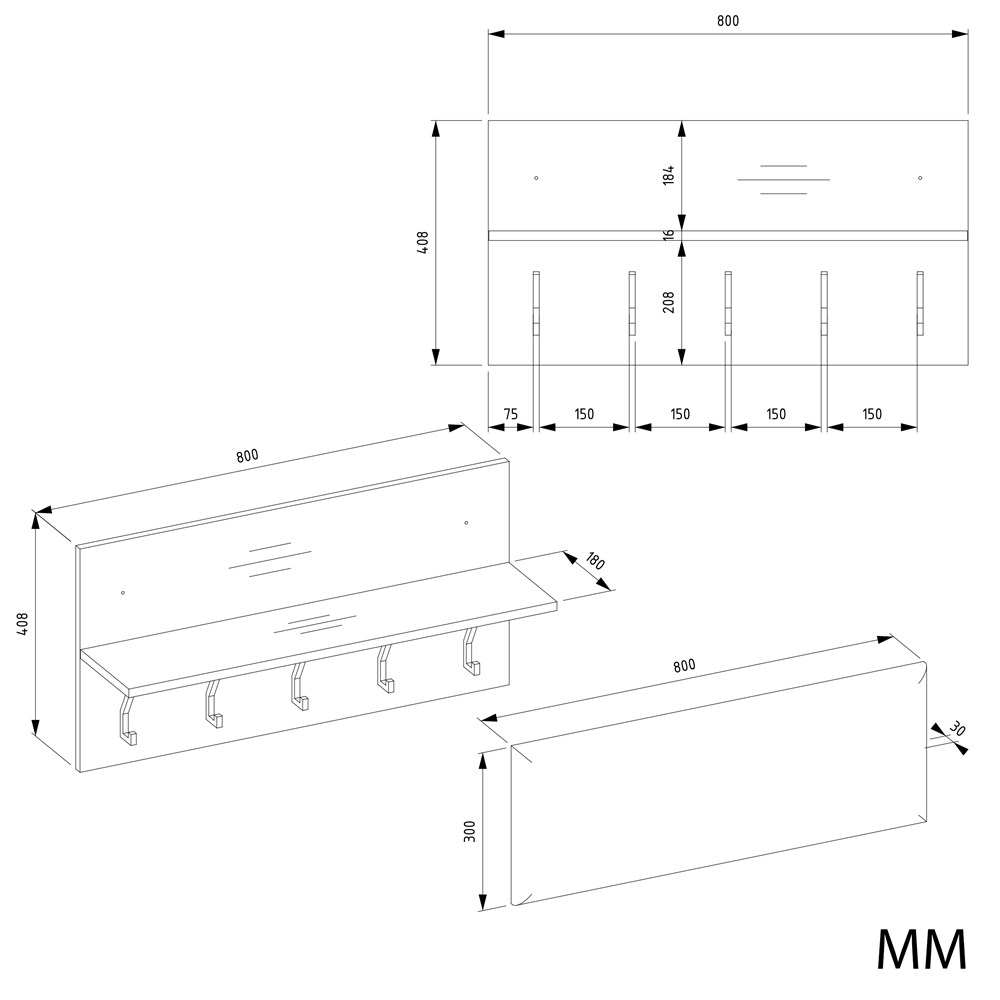- Szafka na buty Lior + Wieszak ścienny z półką (do samodzielnego montażu).